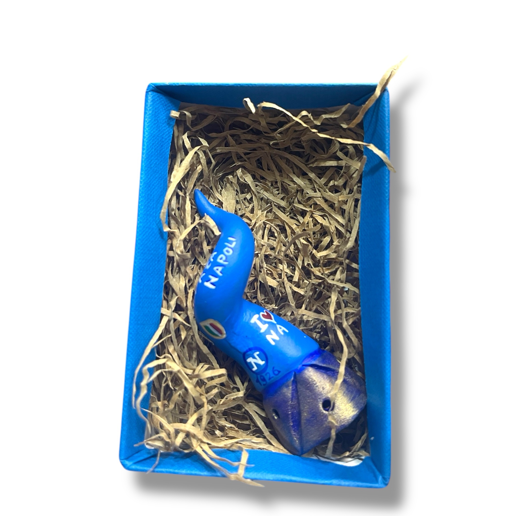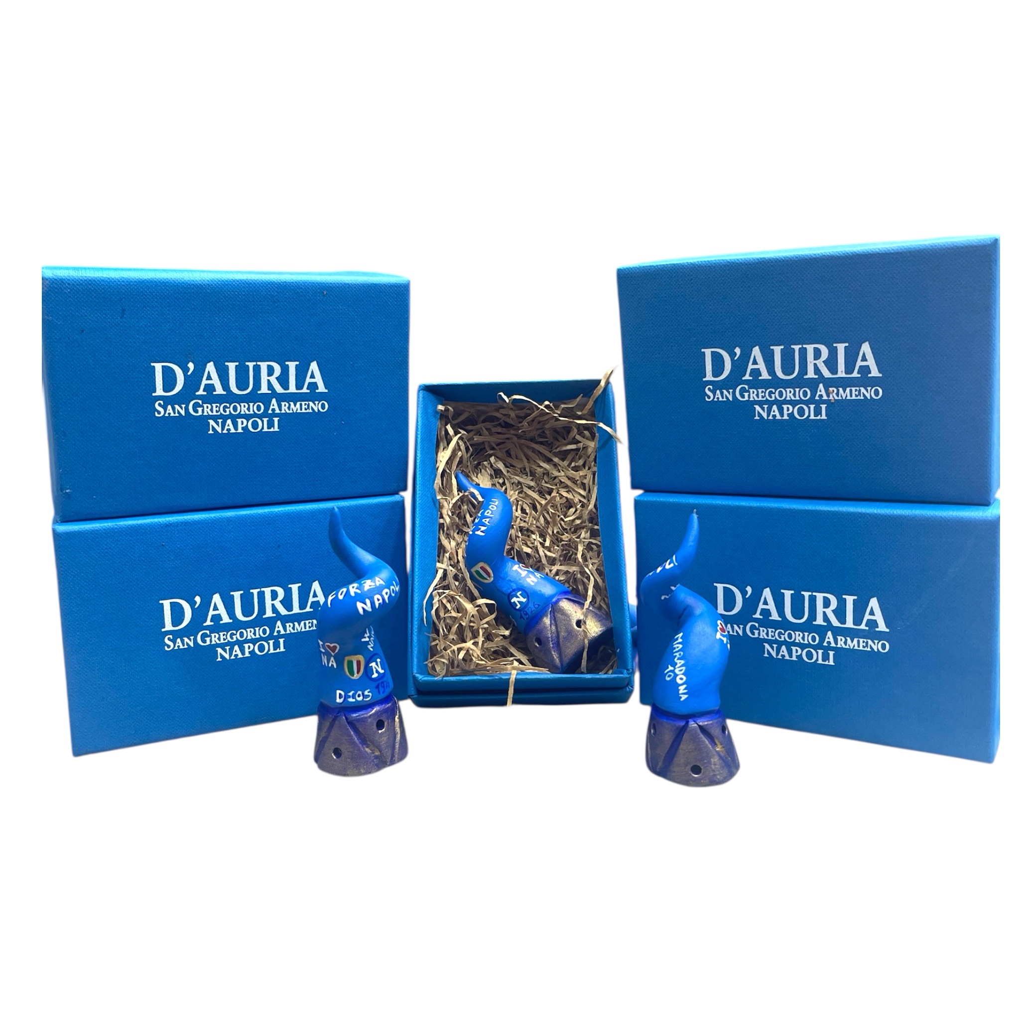 il tutto confezionato in una scatola Azzurro Napoli e intestazione D’auria San Gregorio Armeno in bianco